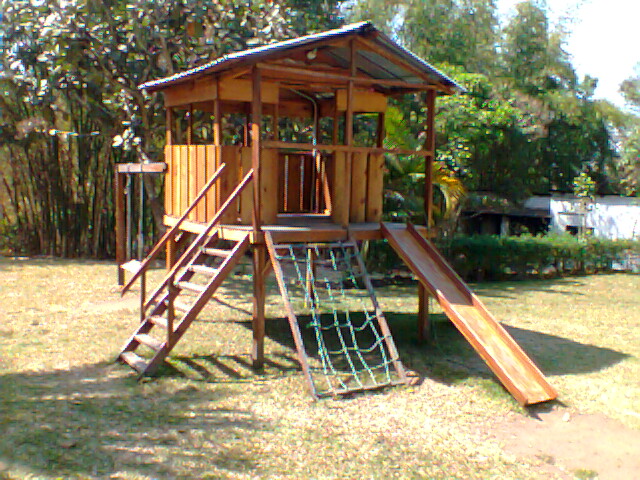 In the garden of one of Blantyre’s best restaurants, Hosteria, this playhouse had to be finished to a high standard. As you can see we created a slide, climbing net and swing – as well as a climbing rope on the other side. Any of these can be built into your tree or playhouse.