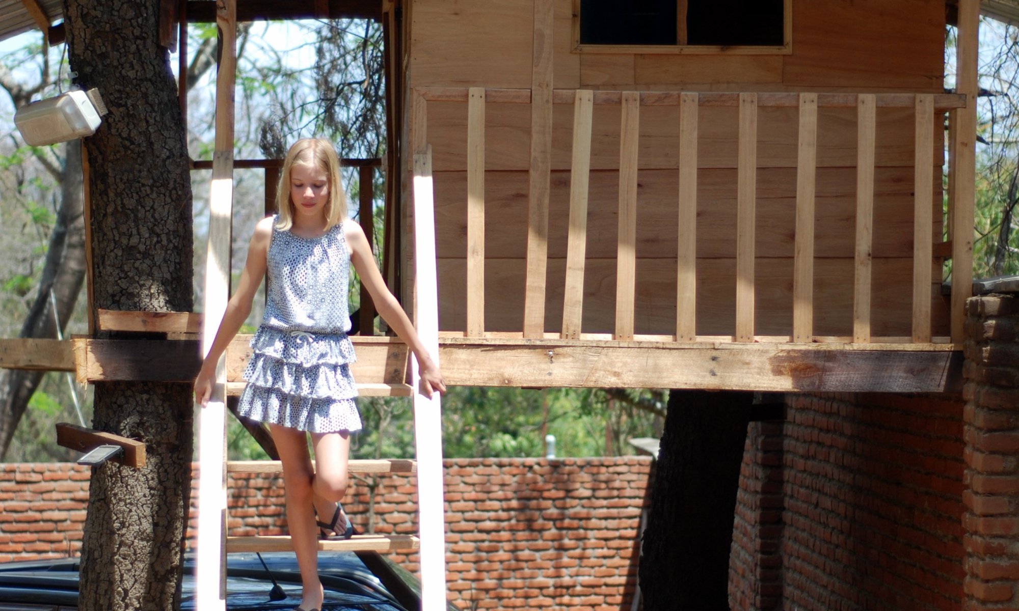 Fanuel came up with an amazing design, bridging three trees and a wall; which makes it a car port too.